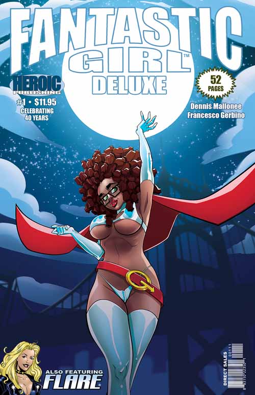 We've figured it out! The new Fantastic Girl comic book is going to be part of our re-entry into comic book retail stores later this year, joining Flare Deluxe, Liberty Girl Deluxe, and Sensational G-Girl Deluxe on our schedule for release through Philbo Distribution.